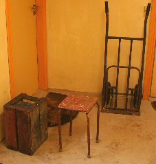 På stolpen ses beslag til maltvalsningen: Jeg har en af Maltbasagens økonomimøller,