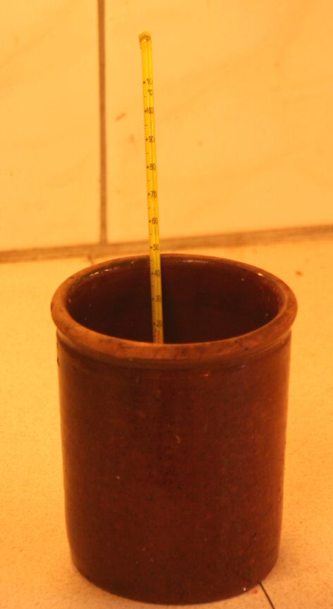 Ligeledes et termometer, der går fra 0-100°, samt en skål til at stille termometeret i. Dels så det ikke bliver væk og knust og dels for at undgå drypmærker. Jeg vil helst anvende det viste termometer, da det er lettest at anvende.